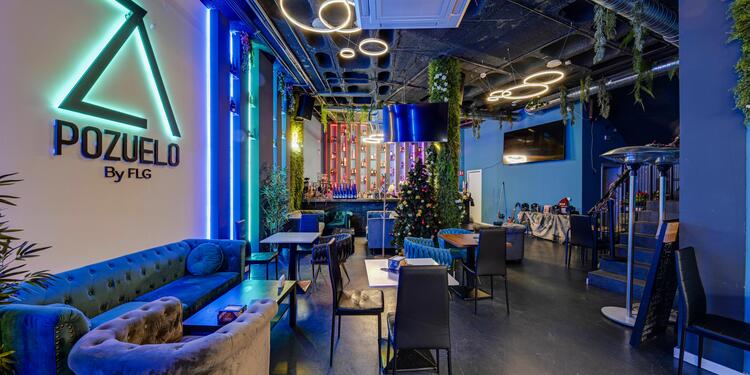 Azure Pozuelo es un espacio multifuncional que combina comida de calidad con una amplia variedad de bebidas. La propuesta incluye cócteles creativos, cachimbas, karaoke y música en vivo para animar vuestras celebraciones. Ya sea un cumpleaños, un afterwork, o una fiesta privada, este bar ofrece todas las opciones para personalizar vuestra experiencia. Los espacios están diseñados para recibir tanto a particulares como a empresas que buscan un lugar versátil y animado.