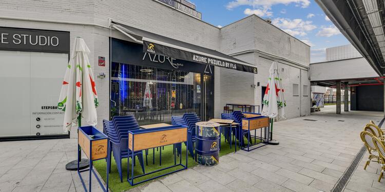 Azure Pozuelo es un bar multiusos ubicado en Pozuelo de Alarcón, perfecto para organizar eventos en grupo. Situado en la Calle de Antonio Díaz, este bar se encuentra al lado de la estación de Renfe de Pozuelo, lo que facilita el acceso en transporte público. El barrio de Pozuelo ofrece un ambiente tranquilo y residencial, ideal para disfrutar de una velada sin restricciones de ruido gracias a su ubicación aislada de vecinos.