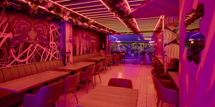 Perlazul es un bar con terraza que combina cocina mediterránea, mariscos frescos y brasería con una carta de cócteles variada. Durante el día ofrece desayunos y comidas en un ambiente luminoso y relajado. Por la noche, el espacio se transforma: música, copas y shisha para grupos que buscan alargar la velada. La decoración es colorida y moderna, perfecta para crear un ambiente acogedor. Este bar en Barceloneta dispone de espacio amplio en terraza donde podéis reservar para grupos y disfrutar de una experiencia única frente al mar.