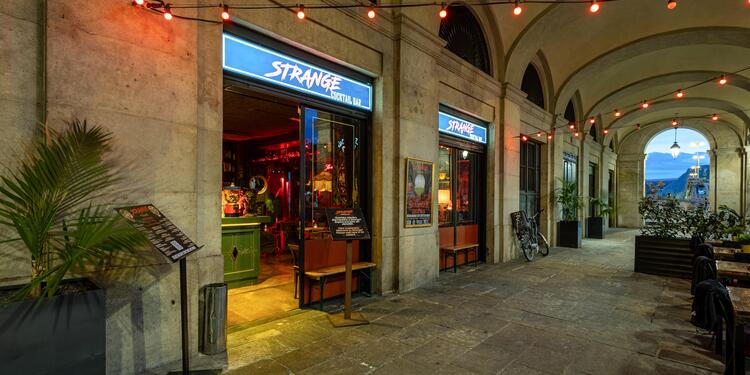 Strange Cocktail Bar es un bar de cócteles artesanales con un ambiente único que combina la estética ochentista con la creatividad mixológica. Los bartenders crean cócteles originales y experimentales como el "Upside Down" (gin, flor de saúco y pepino), el "Demogorgon Delight" (frutas exóticas y ron) o el "Mind Flayer" (dulce y ácido). La decoración incluye lámparas de monstruos pintadas a mano y múltiples referencias a la mítica serie. Además de los cócteles, el bar ofrece snacks como nachos con queso y gambas especiadas al popcorn. El ambiente se complementa con juegos de mesa (Jenga, UNO) y videojuegos retro, perfectos para crear un ambiente distendido durante vuestros afterworks o cumpleaños en grupo. También podéis disfrutar de sofás cómodos para grupos y un servicio personalizado donde el equipo adapta cócteles según vuestras preferencias.